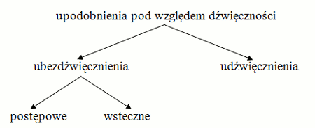 Podział upodobnień pod względem dźwięczności pokazuje poniższy schemat.