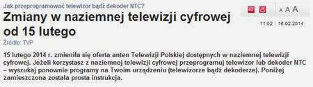 15 lutego 2014 r. zmieniła się oferta kanałów tematycznych Telewizji Polskiej dostępnych w naziemnej telewizji cyfrowej?