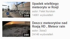 W związku z niedawnym deszczem m… (w dalszej części artykułu ustalimy, jak nazwać to, co tam naprawdę latało i spadało) nad Czelabińskiem odżyło kilka językowych dylematów. Z tymi, którzy chcą przy tej okazji mówić o apokalipsie lub armagedonie, rozprawiłem się już przed spodziewanym i niedoszłym końcem świata w artykule Apokalipsa, armagedon i koniec świata w ujęciu językowym. Teraz skupię się na konkretach, czyli na tym, jak należałoby nazwać obserwowane zjawisko: czy — jak chcą niektórzy — były to meteory, czy — jak chcą autorzy wielu filmików na portalu YouTube — meteoryty (co widać na załączonym obrazku), czy może coś, co należałoby nazwać jeszcze inaczej?